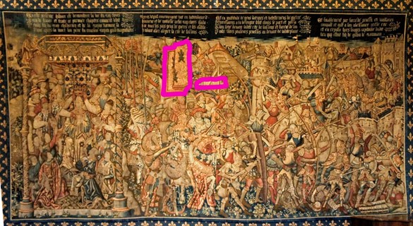 [14] The tapestries of “Histoire du fort roy Clovis” are circa 1573CE, while The Hyghalmen Roll is circa 1450CE. The tapestries of “The History of St Remi” are somewhere in the middle, circa 1535CE.